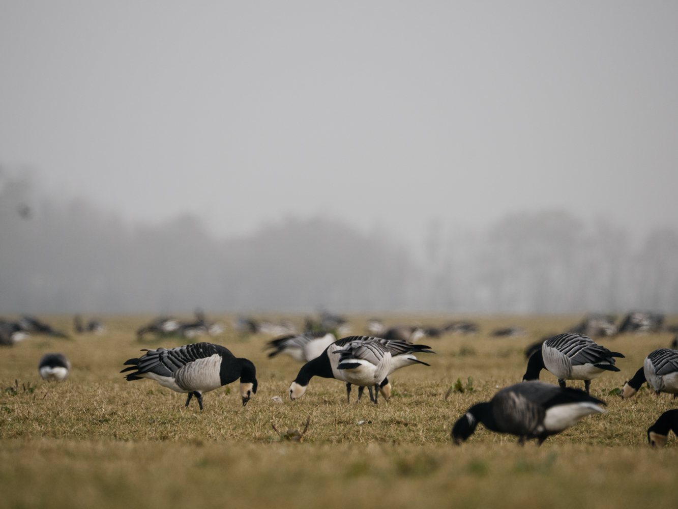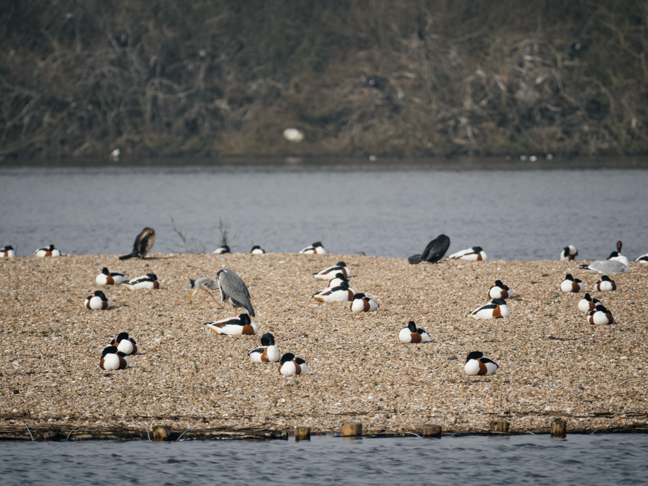 Durch weite Dünen und Wiesen steuern wir anschließend auf Westerplas zu, einen der besten Orte für Vogelbeobachtung auf Schiermonnikoog. Nicht umsonst gibt es hier gleich zwei Vogelbeobachtungshütten, eine davon mit hochwertigem Swarovski-Spektiv ausgestattet. Die Kormorane und Reiher sind im Gestrüpp am gegenüberliegenden Ufer fleißig mit dem Nestbau beschäftigt, unzählige Brandgänse schlummern auf den Kiesinseln im See, Haubentaucher balzen um die Wette und irgendwo im Hintergrund kräht immer ein Fasan. Schiermonnikoog ist ein absolutes Vogelparadies (unter anderem, weil es keine Landraubtiere auf der Insel gibt, die Nester plündern könnten).