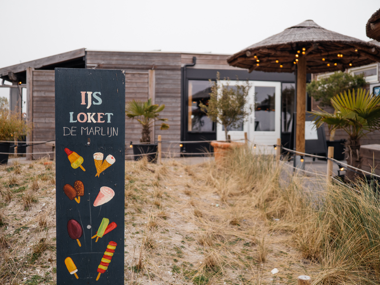 An den Strandpfahl 11 gelehnt lassen wir uns im Sand sitzend unsere Mittagspause schmecken, bevor wir über den unglaublich weiten, platten und leeren Strand zum Pfahl Nummer 8 schlendern und dort wieder auf einen Weg hinter den Dünen abbiegen. Später können wir den roten Leuchtturm erspähen – einen von zweien auf der Insel – und kehren im gemütlichen Strandpavillon De Marlijn (sehr empfehlenswert!) für Pommes und Getränke ein. Immerhin der nördlichste Gastronomiebetrieb der Niederlande!