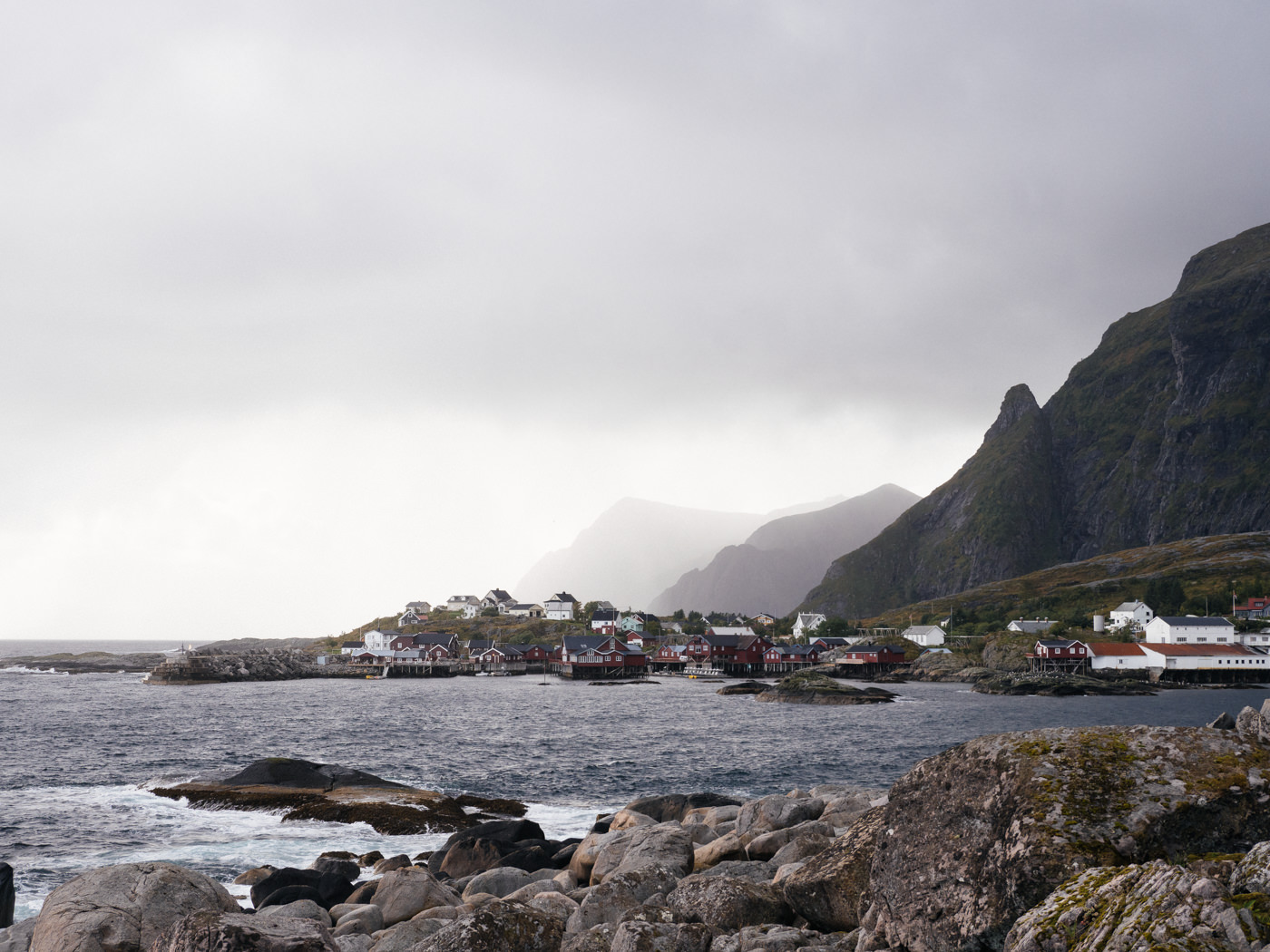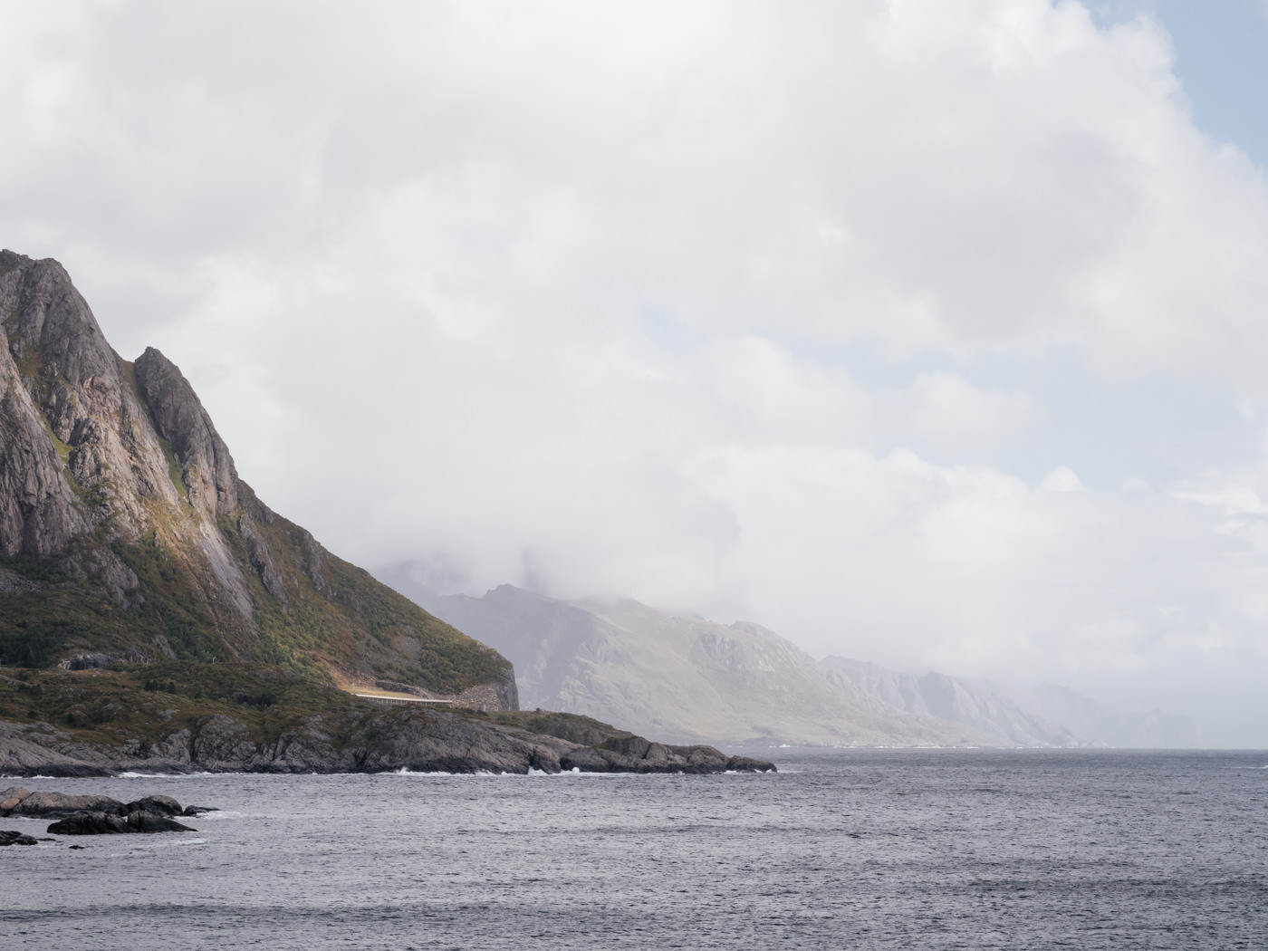 Bevor ich mich den Lofoten widmete, zog es mich auf die Vesterålen. Die Inselgruppe liegt direkt nördlich der Lofoten und ist im Allgemeinen deutlich weniger bekannt und besucht. Meine ersten Tage dort waren wettermäßig eher so semi, mit jeder Menge Regen, Wind und Temperaturen im einstelligen Bereich. Und auch wenn ich schlechtes Wetter eigentlich ganz gern mag, hat mir das doch ein bisschen zugesetzt – nicht nur körperlich, sondern auch mental. Vor lauter Nebel und Wolken konnte ich wenig von den eindrucksvollen Landschaften sehen, vor lauter Kälte und Nässe wenig genießen. Ich war kurz davor, mich zu fragen, ob es nicht doch eine eher blöde Idee war, auf die Inseln zu fahren, ob ich nicht einfach lieber hätte in Schweden bleiben sollen, wo doch alles so schön gewesen war.