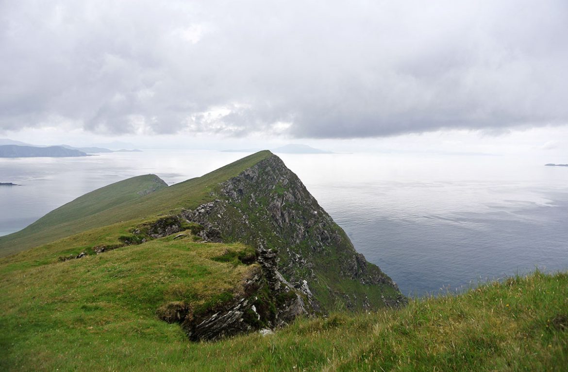 Mein Erfahrungswert beschränkt sich leider auf die Klippen und den Fuß des Croaghaun, da der Berg ziemlich vom Nebel eingehüllt war und den ganzen Tag auch nicht mehr herauskommen wollte. Wenn Du den Berg auslassen willst, gehst Du einfach den selben Weg, hinunter in die Senke und bis zum Fuß des Croaghaun und dann querfeldein wieder Richtung Parkplatz.