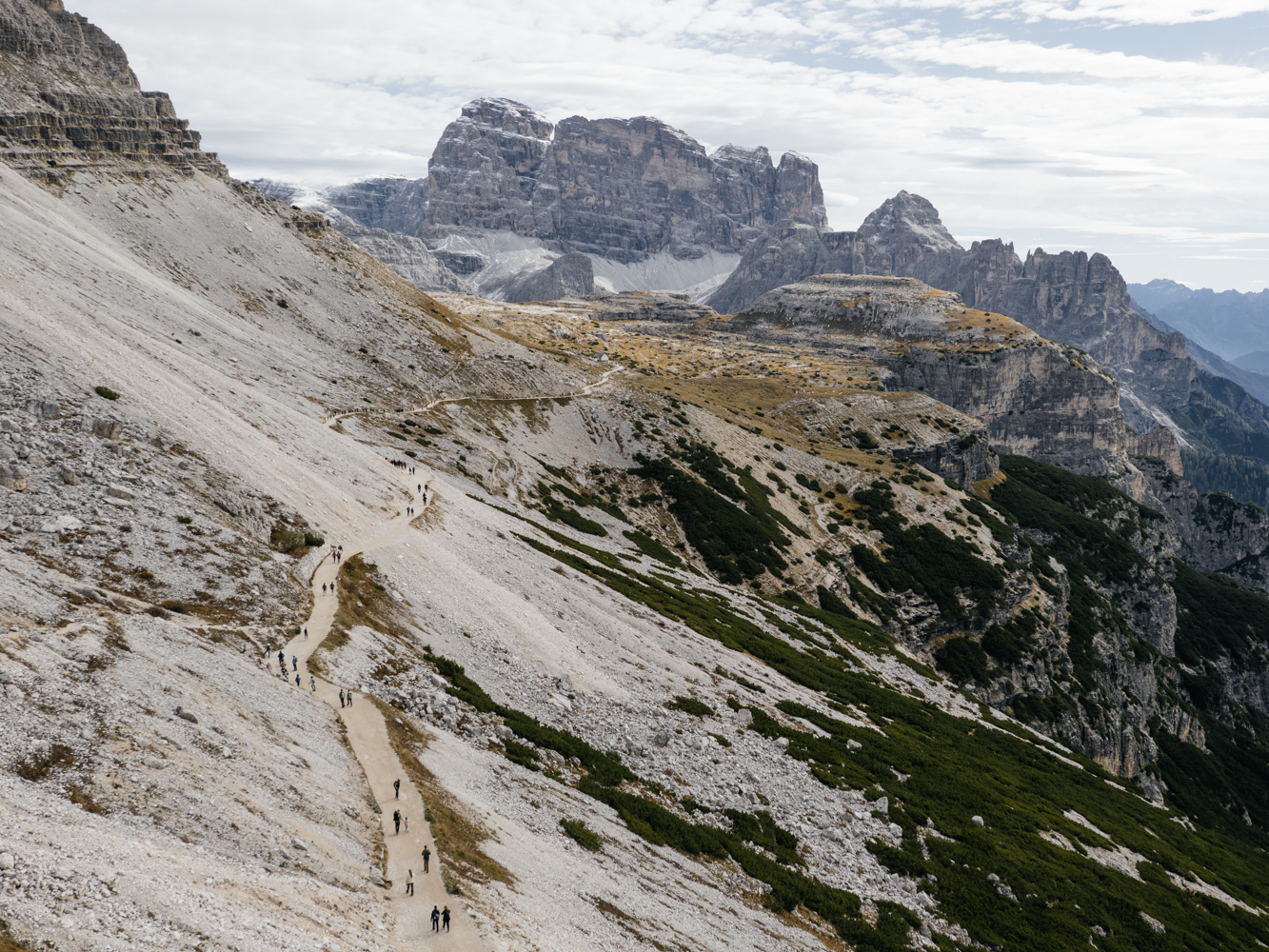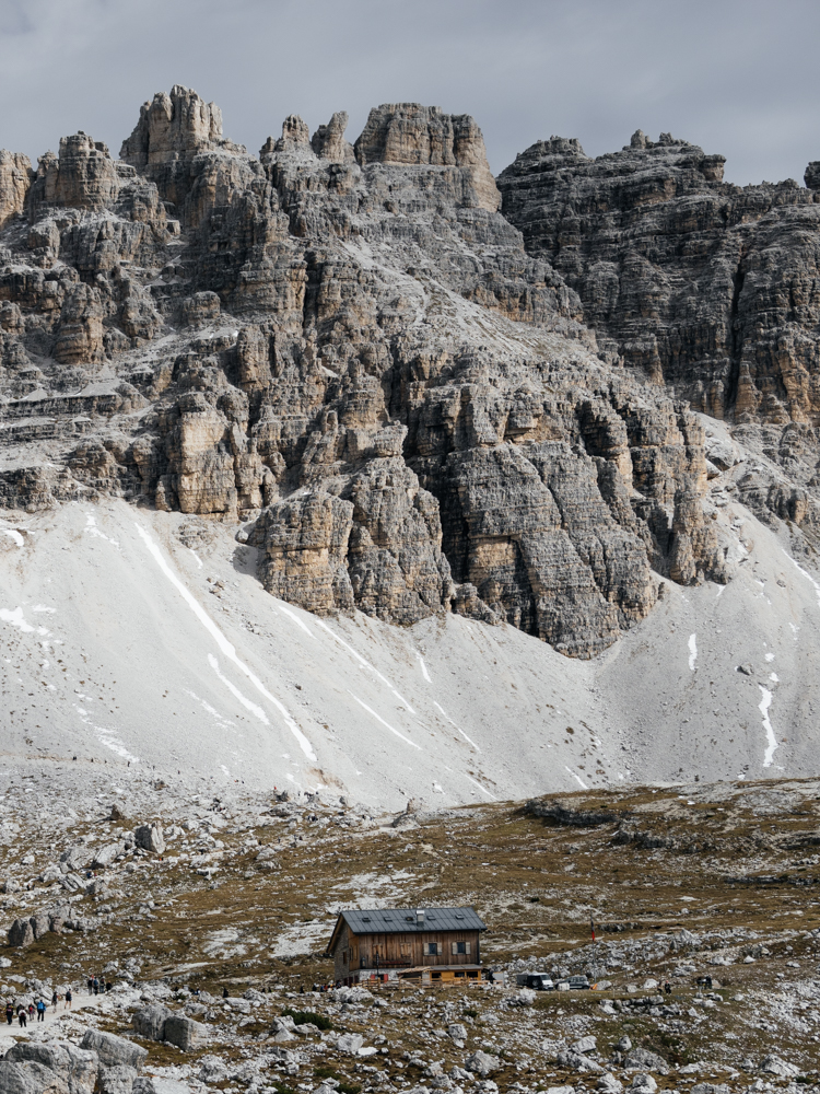 Fast werden die Drei Zinnen auf dieser Tour zur Nebensache, denn die umliegende Bergwelt ist rundherum und von Anfang bis Ende atemberaubend. An der kleinen Langalm treffen wir wieder auf die Hauptwanderroute, der wir nochmal etwas bergauf bis zum Col die Mezzo und dann zurück zum Parkplatz folgen. Der ist nun noch ein bisschen voller als zu Beginn unserer Tour, und doch stelle ich zum Ende der Tour hin fest, dass es mir trotz all der Menschen irgendwie gelungen ist, auf dieser Tour auch ein bisschen die Natur zu genießen. Würde ich die Runde nochmal machen? Eher nicht. Bin ich froh, dass ich sie gemacht habe? Durchaus. (Und dank der guten Besucherlenkung und Infrastruktur vor Ort ist das meiner Meinung nach auch zu verantworten – Stichwort Overtourism.)