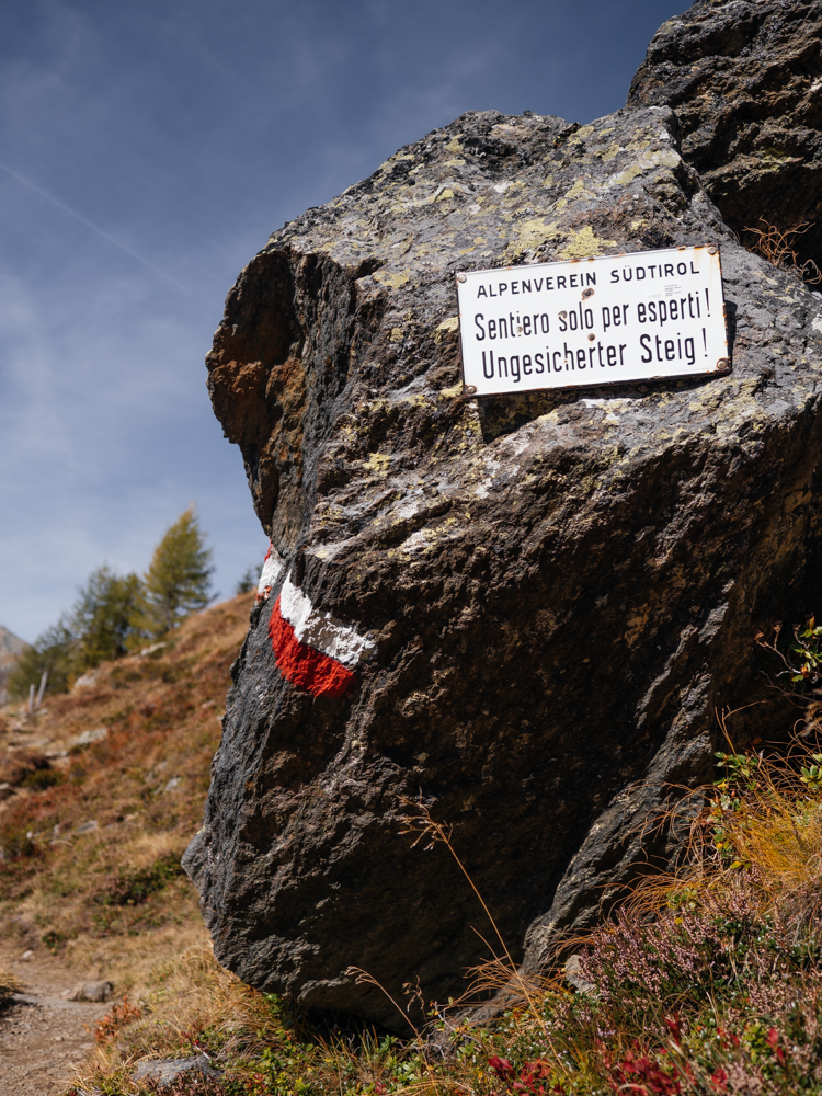 - Herbstfarben: Die Herbstsaison in Südtirol beginnt in der Regel Ende September und dauert bis weit in den November hinein. Durch das milde Klima setzt die Herbstfärbung oft erst etwas später ein als nördlich der Alpen. Ich war in der ersten Oktoberhälfte unterwegs und die Lärchen, die im Herbst goldgelb leuchten, waren vielerorts noch ziemlich grün. Die besten Chancen auf schneefreie Wanderungen mit vielen Herbstfarben hat man vermutlich in der zweiten Oktoberhälfte, wobei das natürlich von Jahr zu Jahr sehr unterschiedlich sein kann.
