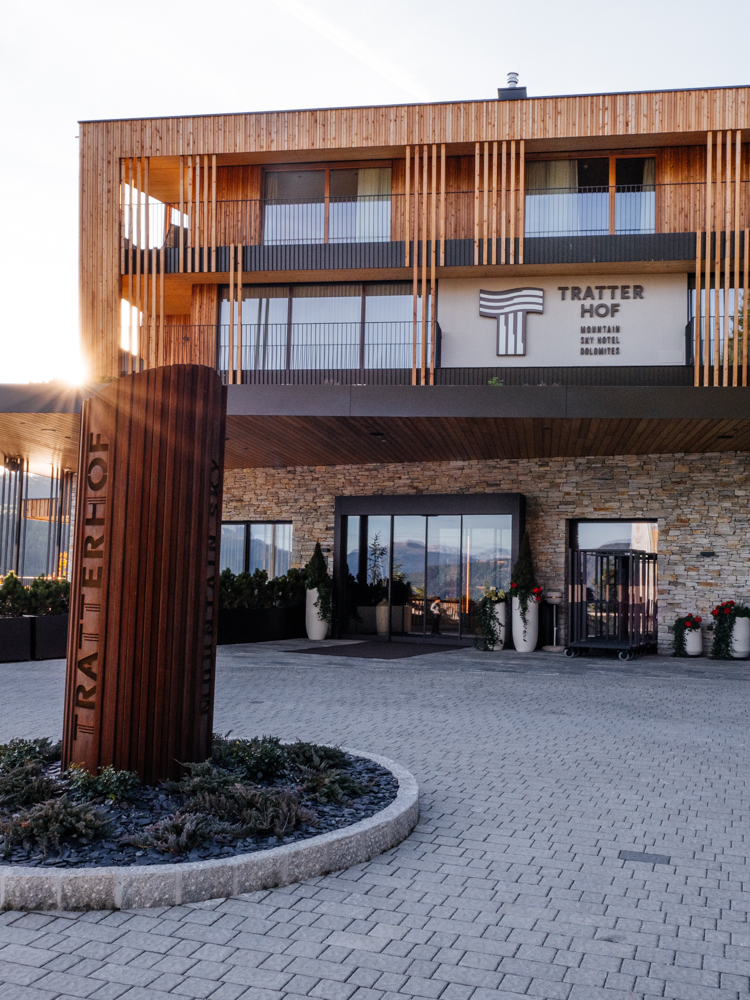Wenn man das Vitalpina Mountain Sky Hotel Tratterhof heute sieht, kann man kaum glauben, dass das alles mal mit einem einfachen Bauernhof begann. Vor über 40 Jahren eröffnete dort die heutige Senior-Chefin Regina Gruber eine kleine Pension. Seitdem ist ziemlich viel passiert: Tochter Evelyn Gruber hat mit ihrem Mann Andreas die Führung übernommen und den Tratterhof in ein modernes Mountain Sky Hotel verwandelt. Mehr als 50 Mitarbeitende sind dort beschäftigt und kümmern sich um die Gäste in den über 70 Zimmern und Suiten. Dabei ist trotz der Größe des Tratterhofs die familiäre Herzlichkeit spürbar – vom persönlichen Empfang an der Rezeption bis zum Abendessen, wenn die Senior-Chefin ihre Runden dreht und mit den Gästen plauscht. Oder sie beim wöchentlichen Knödelkurs in die Geheimnisse der Südtiroler Knödelkunst einweiht.