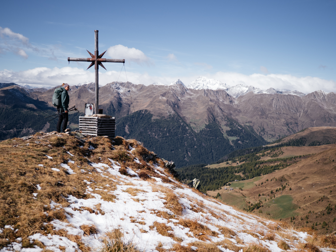 Von letzteren gibt es rund 60 an den Hängen des Gsiesertals, viele der Almhütten bieten auch authentische Einkehrmöglichkeiten. Für meine erste Herbstwanderung in Südtirol habe ich entlang der Wanderroute Almweg 2000 einigen davon einen Besuch abgestattet, die Tour aber auch noch um einen Gipfelabstecher auf die 2.494 m hohe Gailspitze erweitert.
