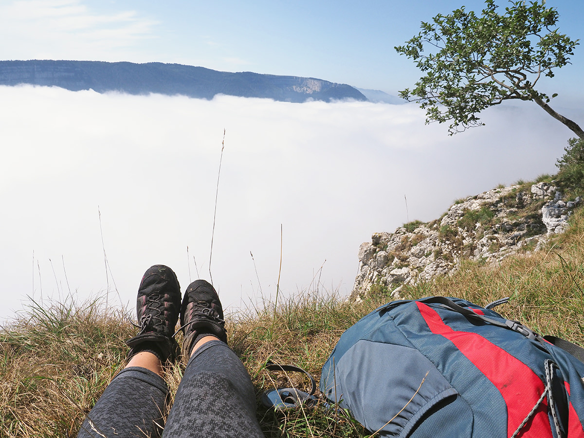 Der Weg selbst ist nie zu fordernd und somit auch für Fernwanderanfänger ideal. Immer wieder geht es zwar auf und ab, aber nie zu lange und nie zu steil. Und dank der Höhenmeter warten immer wieder schöne Ausblicke – sofern man denn einen schönen Tag mit klarer Sicht erwischt. Das ist im Jura-Gebirge nicht immer selbstverständlich, denn die Wolken bleiben gern mal an den Höhenzügen hängen. Aber auch das macht den Weg besonders. Vor allem, wenn man das Glück hat, auch mal über diesen Wolken wandern zu können.