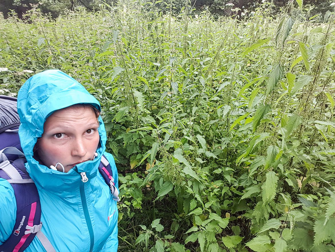 Definitiv der Gewinner in Sachen mieser Wanderbegleiter! Seit ich den South West Coast Path verlassen habe, kämpfe ich mich täglich durch mannshohe Maisfelder, riesige Brennessel- und Distelansammlungen, wirre Wiesenlandschaften und vieles mehr. Auf Dauer ist das ganz schön zermürbend. Und leider wird das im Laufe meiner Wanderung auch nicht besser werden – zumindest nicht jenseits der National Trails wie dem Pennine Way, Offa’s Dyke Path usw. Hier verläuft meine Route nämlich größtenteils über “Public Footpaths”, also Wege, die über privates Gelände führen und im Rahmen eines öffentlichen Wegerechts für jedermann/-frau begehbar sind. Im Prinzip eine gute Sache, aber vielleicht nicht gerade im Hochsommer, denn “begehbar” bedeutet in der Theorie leider etwas anderes als in der Praxis. Manche Landbesitzer halten die Wege zwar frei von Gestrüpp, anderen wiederum ist das aber ziemlich wurscht. Und das heißt dann eben, dass man sich jetzt im Hochsommer oftmals wünscht, man hätte der Packliste eine Machete hinzugefügt.