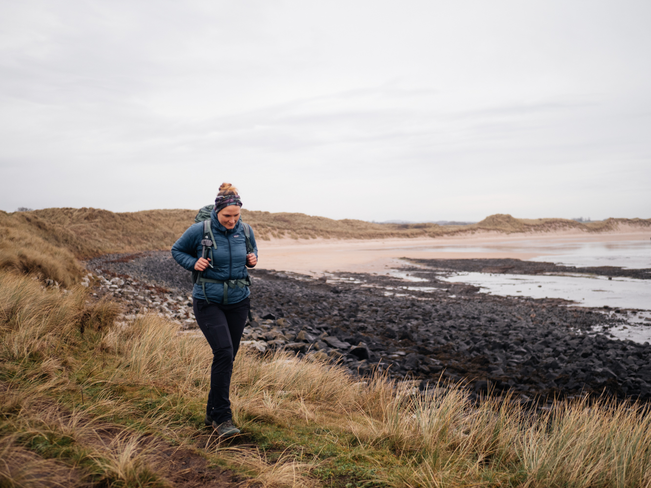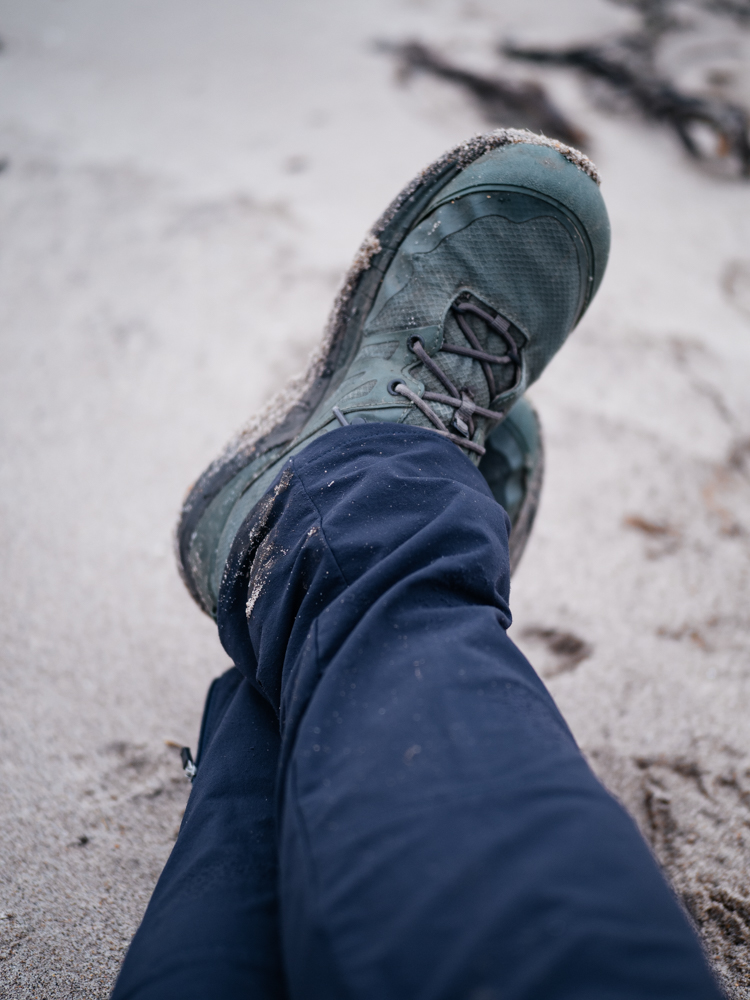 Wechselhaftes Wetter, kühlere Temperaturen, raue Umgebung – die Wander- und Trekkinghose Lana Slim von Maier Sports ist seit mehreren Jahren meine Wahl für Touren im Frühling, Herbst und (milden) Winter. Dieses Jahr hat sie mich nicht nur entlang der Küste von Northumberland begleitet, sondern u.a. auch auf meiner dreiwöchigen Trekkingtour durch Nordnorwegen im Herbst. Die Hose ist aus einem etwas robusteren Stoff gefertigt, der trotzdem jede Menge Bewegungsfreiheit bietet. Wind und leichte Nässe hält das Material gut ab, die Hose ist aber dennoch atmungsaktiv und nicht zu warm. Zudem trocknet sie sehr schnell.