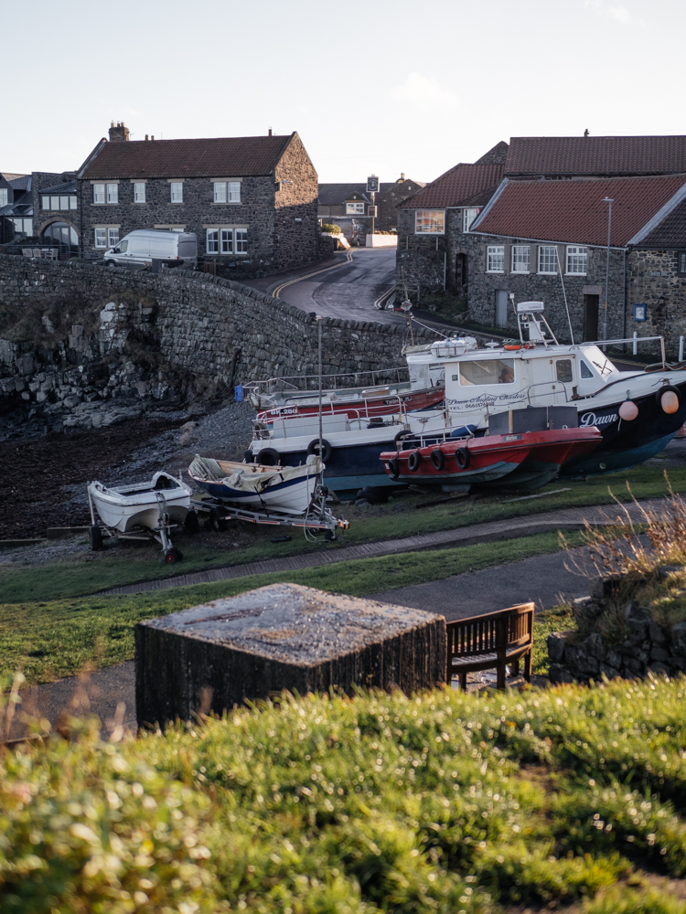Im süßen Örtchen Craster angekommen kehre ich erstmal im örtlichen Café (Shoreline Café) ein. Es gibt veganen Bananen-Zimt-Kuchen frisch aus dem Ofen und Capuuccino mit Hafermilch – da muss man mich nicht zweimal bitten (Großbritannien ist aber übrigens sowieso ein Paradies für alle, die sich bevorzugt von Pflanzen ernähren).