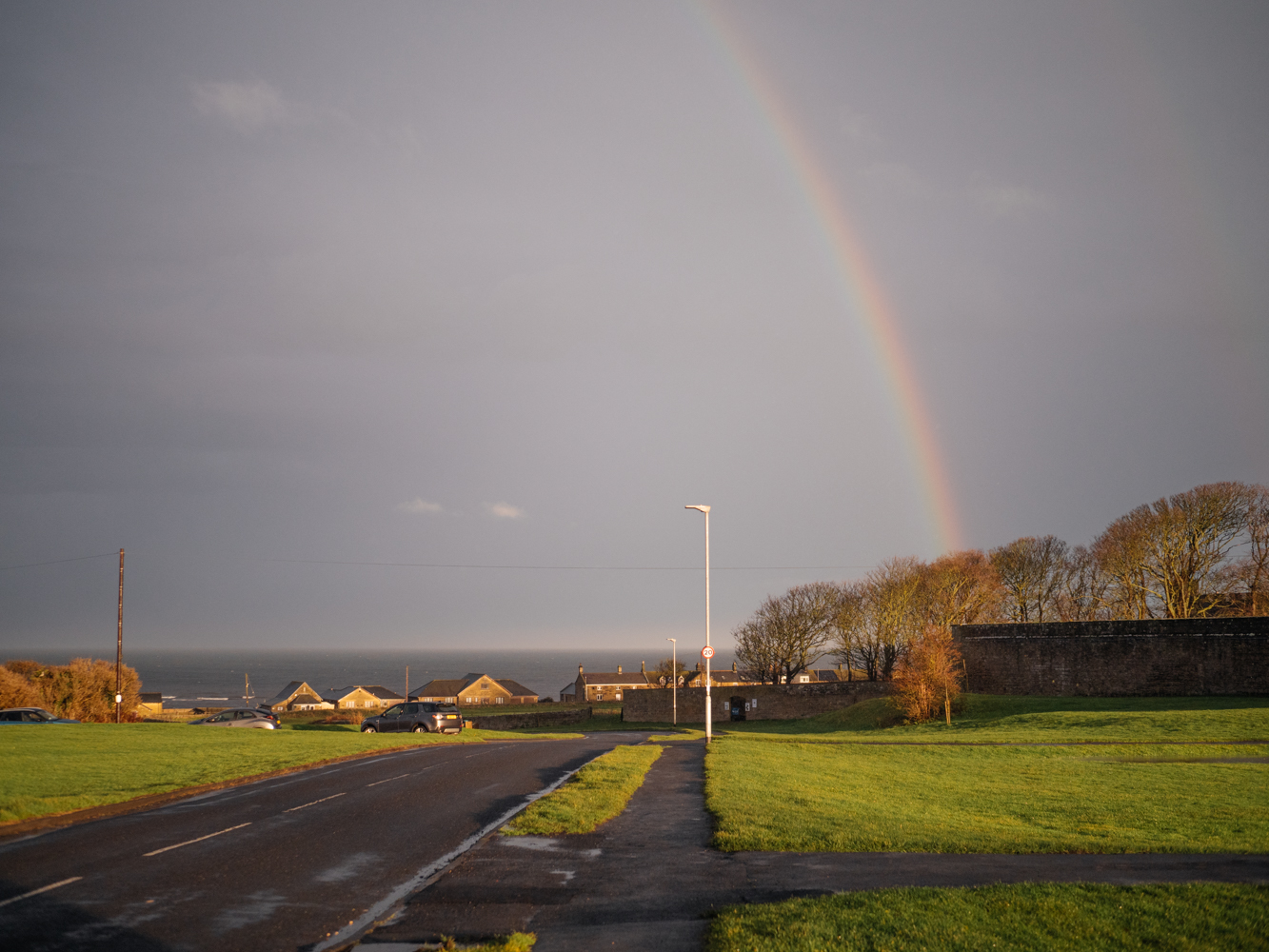 Ab und an hole ich mir beim Durchqueren einer Fluss-/Bachmündung nasse Füße – aber jetzt ist das ja auch schon egal. Und immerhin: Irgendwann ebbt der Regen ab, sodass ich die letzten Kilometer noch im (halbwegs) Trockenen genießen kann. Und pünktlich zum Zieleinlauf in Cresswell kommt dann sogar kurz die Sonne (inklusive doppeltem Regenbogen) hervor. In Cresswell selbst gibt es keine Unterkünfte, aber im ca. zwei Kilometer landeinwärts gelegenen Ellington, wo ich meine Wanderung beende.