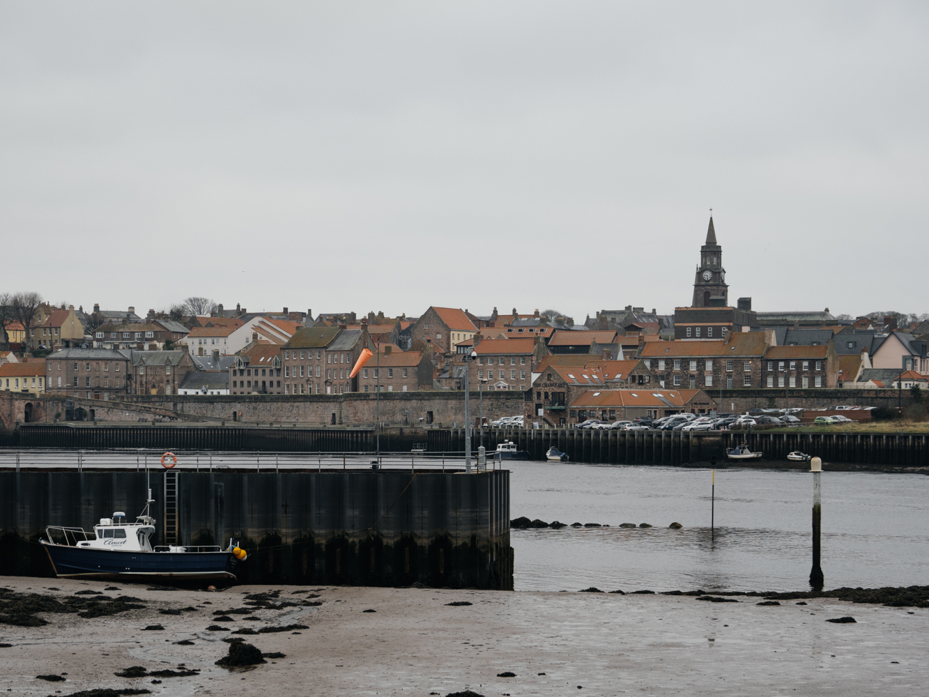 Die nördlichste Stadt Englands liegt auf einer Halbinsel an der Mündung des Flusses Tweed, der in dieser Gegend die englisch-schottische Grenze bildet. Obwohl die Stadt auf der nördlichen Seite des Flusses liegt, gehört sie noch zu England, da die Grenze um Berwick herum verläuft. Vom Zentrum aus wandere ich über die ältere der beiden Brücken über den Tweed, dann am Hafengelände entlang bis zur Flussmündung, die an der gegenüberliegenden Seite von einem kleinen roten Leuchtturm markiert wird. Am Spittal Beach kann man sich gut vorstellen, wie es hier an einem warmen Sommertag zugehen muss – jetzt im Dezember hingegen versprühen die bunt angemalten, aber geschlossenen Strandimbisse eine andere Art von Charme.