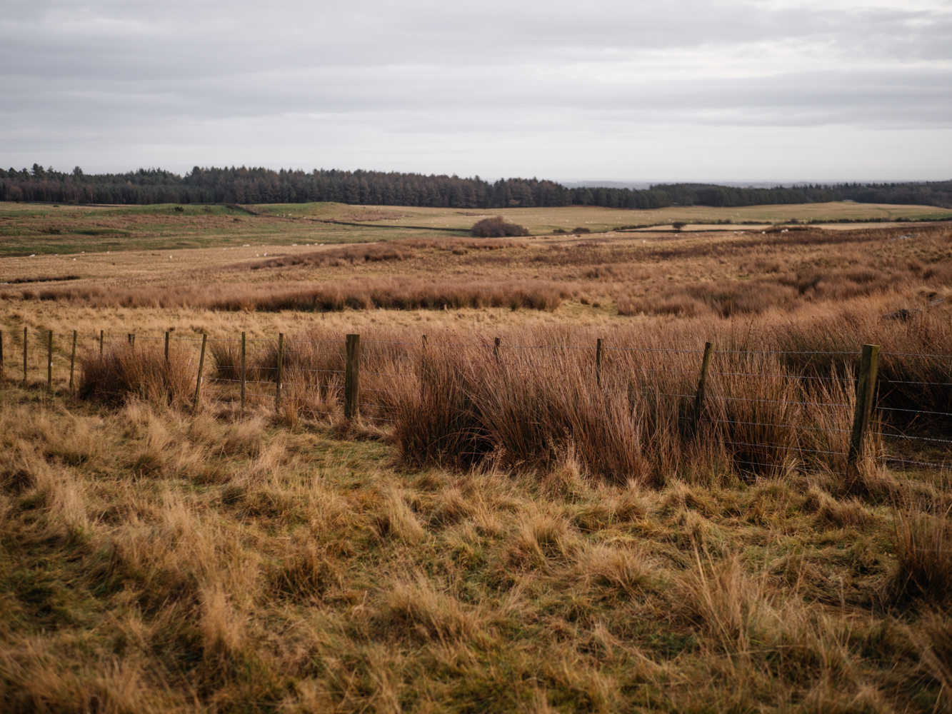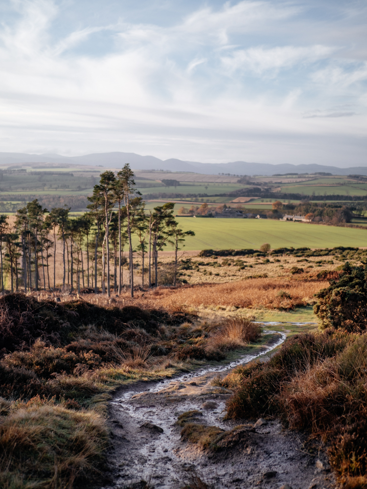 Ein Stück folge ich dem Waldrand mit Blick auf die Berge, dann geht es größtenteils über Farmland auf kleinen Wegen und (recht matschig) über Wiesen dem Etappenziel Belford entgegen. Ich hab von dieser Etappe aufgrund der Routenführung nicht allzu viel erwartet, aber sie hat mir tatsächlich ziemlich gut gefallen. Morgen dann aber wieder ab ans Meer!