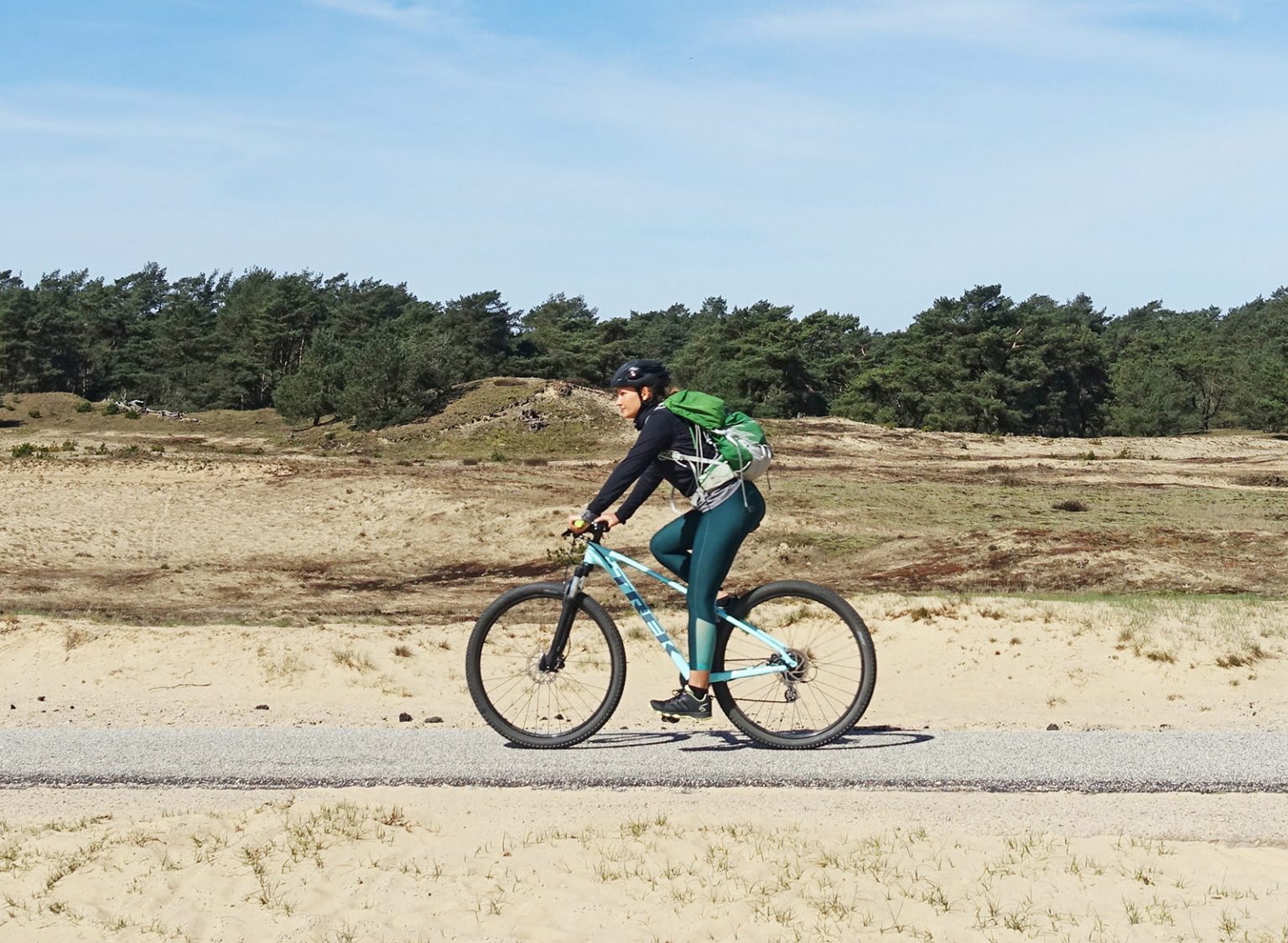 Umso sprachloser war ich, als ich zum ersten Mal relativ nichtsahnend in das Gebiet der Veluwe fuhr. Plötzlich war da einfach nur noch Natur. Und viele Kilometer Rad- (und Wander-)Wege, die mitten durch diese Natur hindurchführen. Durch Wälder und Sandwehen, Moos- und Flechtensteppen sowie weitläufige Heidegebiete. Allein auf dem Gebiet des Nationalparks sind die Landschaften unfassbar vielfältig. Mal fuhr ich durch goldene Graslandschaften wie im wilden Westen, dann durch sandige Dünenlandschaften, die auch in der Sahara sein könnten (wenn die Bäume drumherum nicht wären). Und dann wieder durch Nadel- und Birkenwälder, die denen in Finnland oder Schweden in nichts nachstehen.