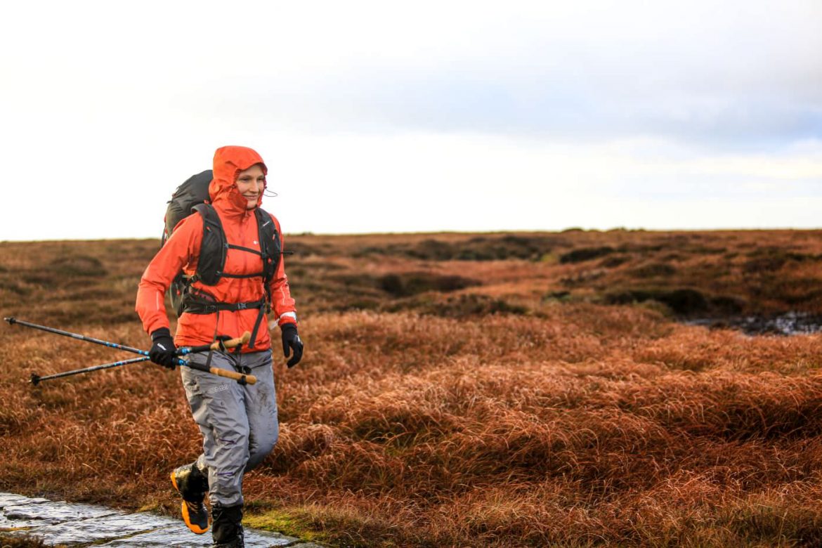 Meine Ausrüstung hat im Trailblazer 30l von Montane locker Platz gefunden, und im Gegensatz zu vielen anderen Spine-Läufer:innen habe ich auch keine zusätzliche Brust- oder Hüfttasche genutzt. (Letzteres kann aber allein aus Organisationsgründen und auf den längeren Distanzen schon viel Sinn machen.) Der Rucksack saß bei mir ab dem ersten Trainingslauf super bequem und fest am Körper und ich hätte wirklich nicht gedacht, dass das Laufen mit einem verhältnismäßig großen Rucksack so easy sein kann.