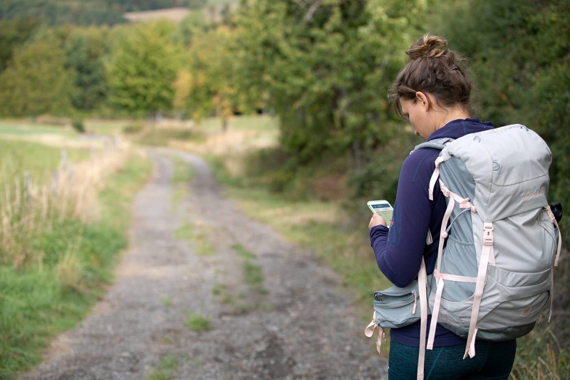 Eines der für mich mit Abstand hilfreichsten Features zur Planung von Tageswanderungen und Mehrtagestouren sind die sportartspezifischen Komoot-Karten. Diese sind in der bezahlten Premium-Version von Komoot verfügbar und zeigen (in der Wanderversion) ausgewiesene Fernwanderwege und (über)regionale Wanderwege farblich gekennzeichnet und auch mit Namen beschriftet an. Zudem wird bei vielen auch ein kleines Symbol angezeigt, dass der Wegmarkierung vor Ort entspricht (also zum Beispiel das Zeichen des Jakobsweges oder verschiedenfarbige Streifen). Das gleiche gibt es übrigens auch für die Planung von Fahrrad- und Mountainbike-Touren. Bei Bergwanderwegen findet man außerdem den jeweiligen Schwierigkeitsgrad nach der SAC-Wanderskala.